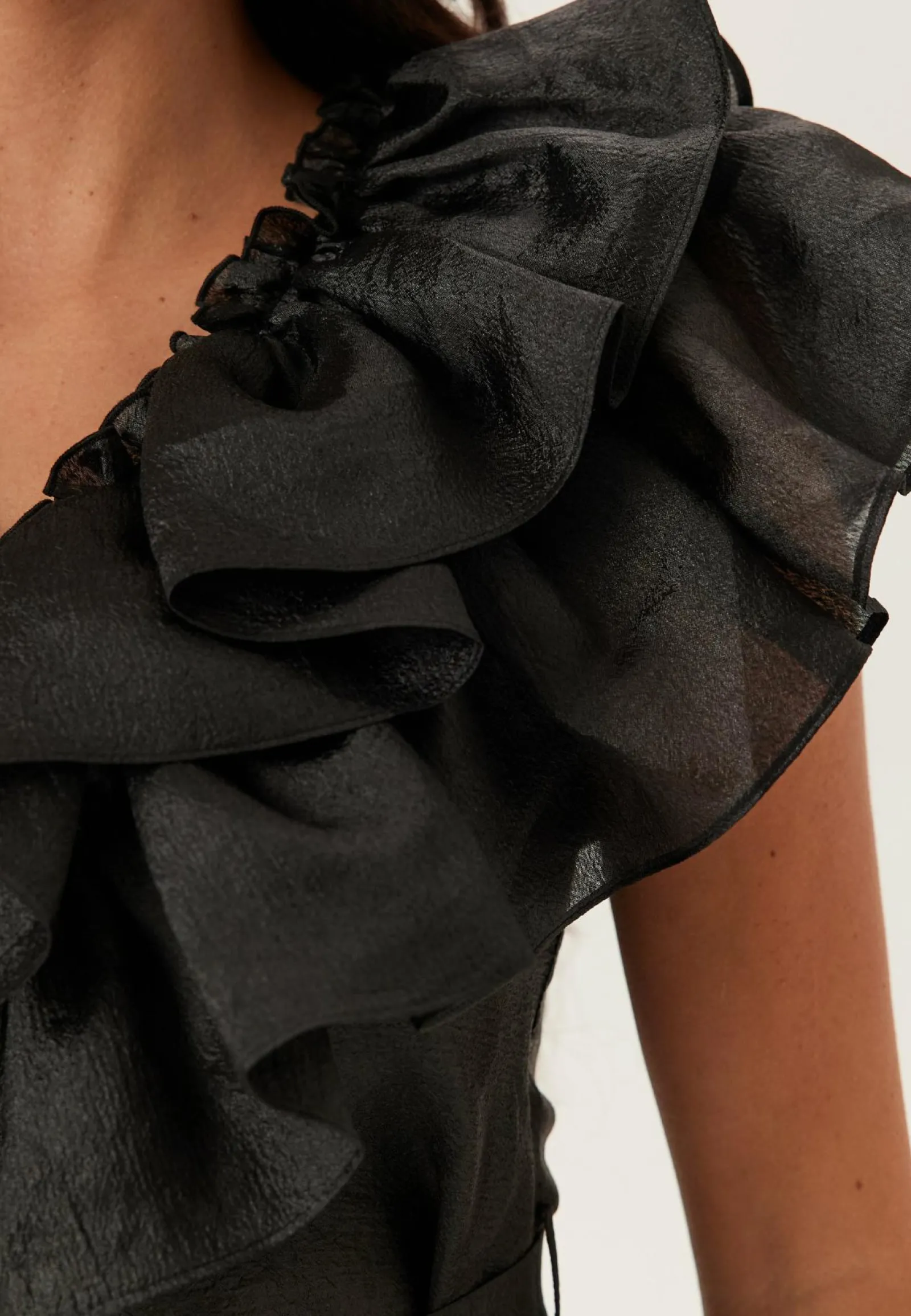 – V-kaula-aukkoinen kaula-aukko röyhelöillä