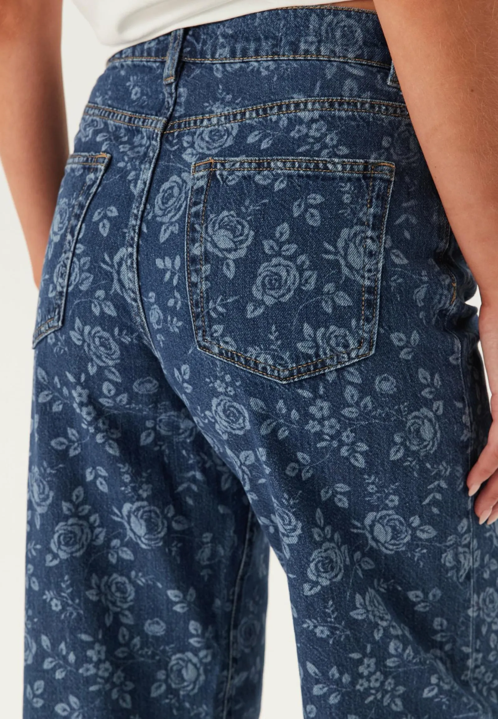 Medium Blue Denim AOP:Roses