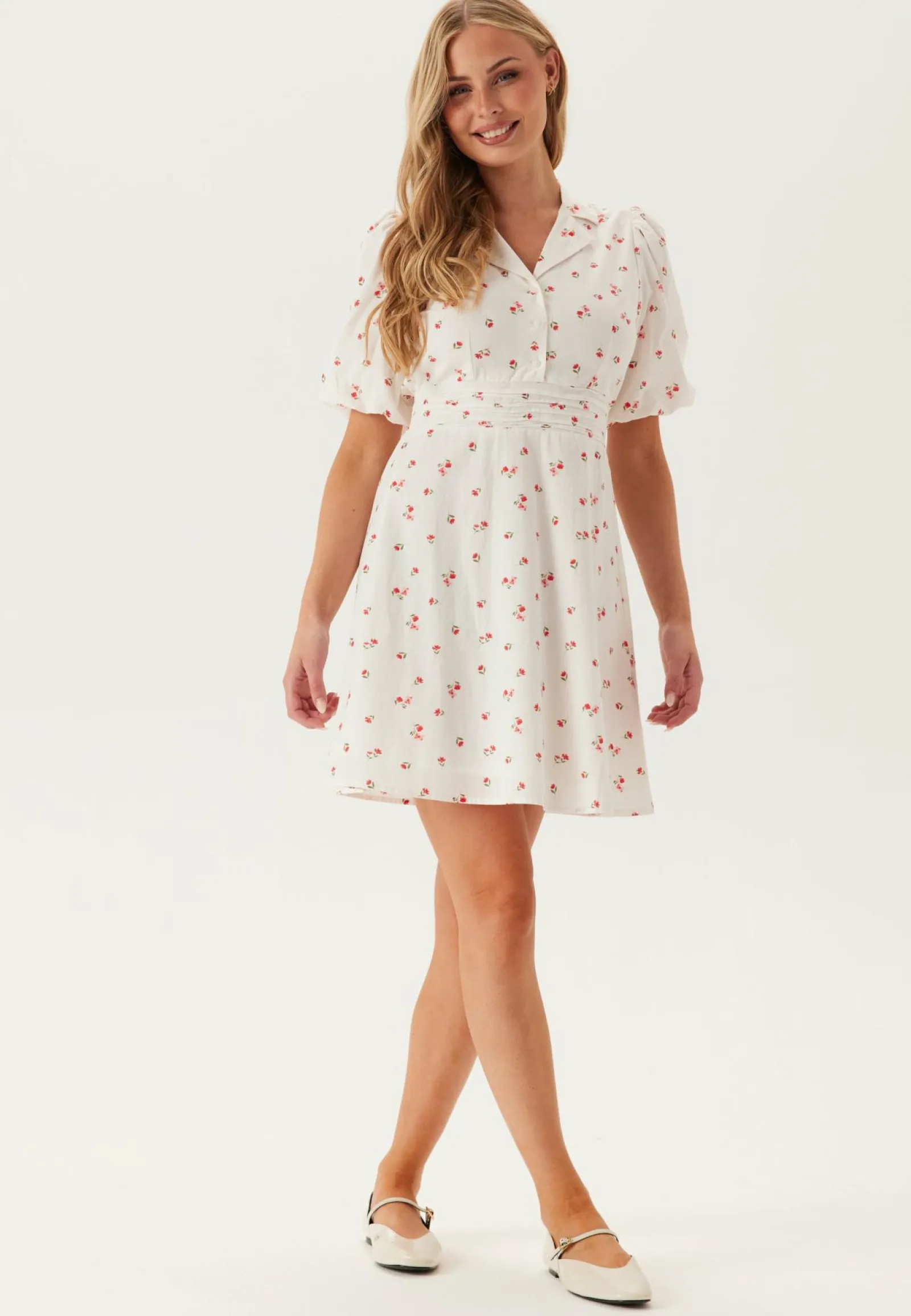 Kuviollinen mekko VILA-tuotemerkiltä lyhyillä puhvihihoilla