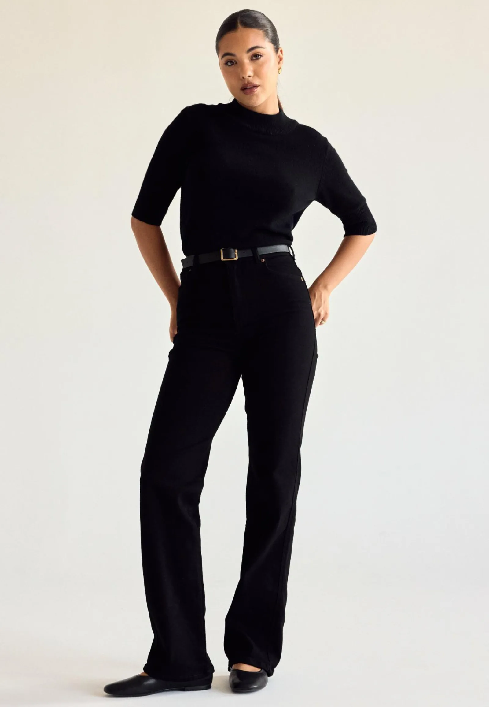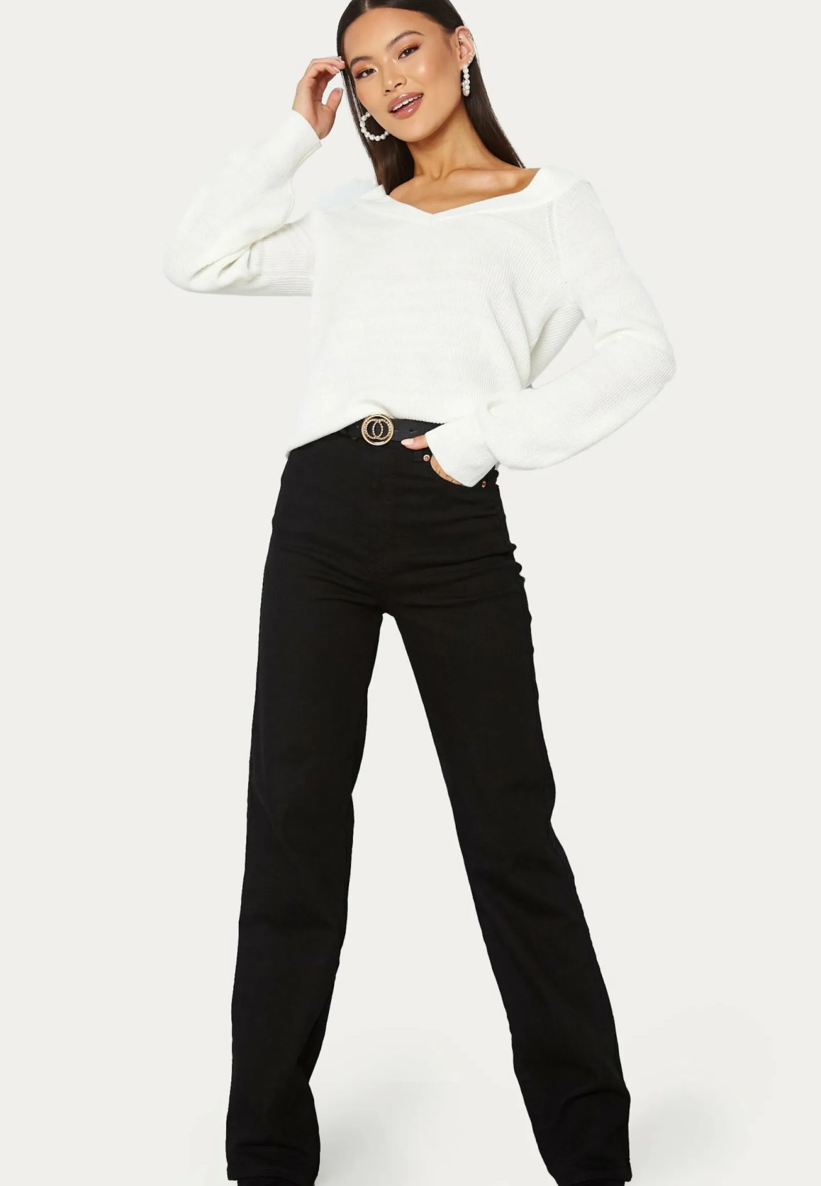 Mallin pituus on 172 cm ja hänellä on päällä koko S/34.