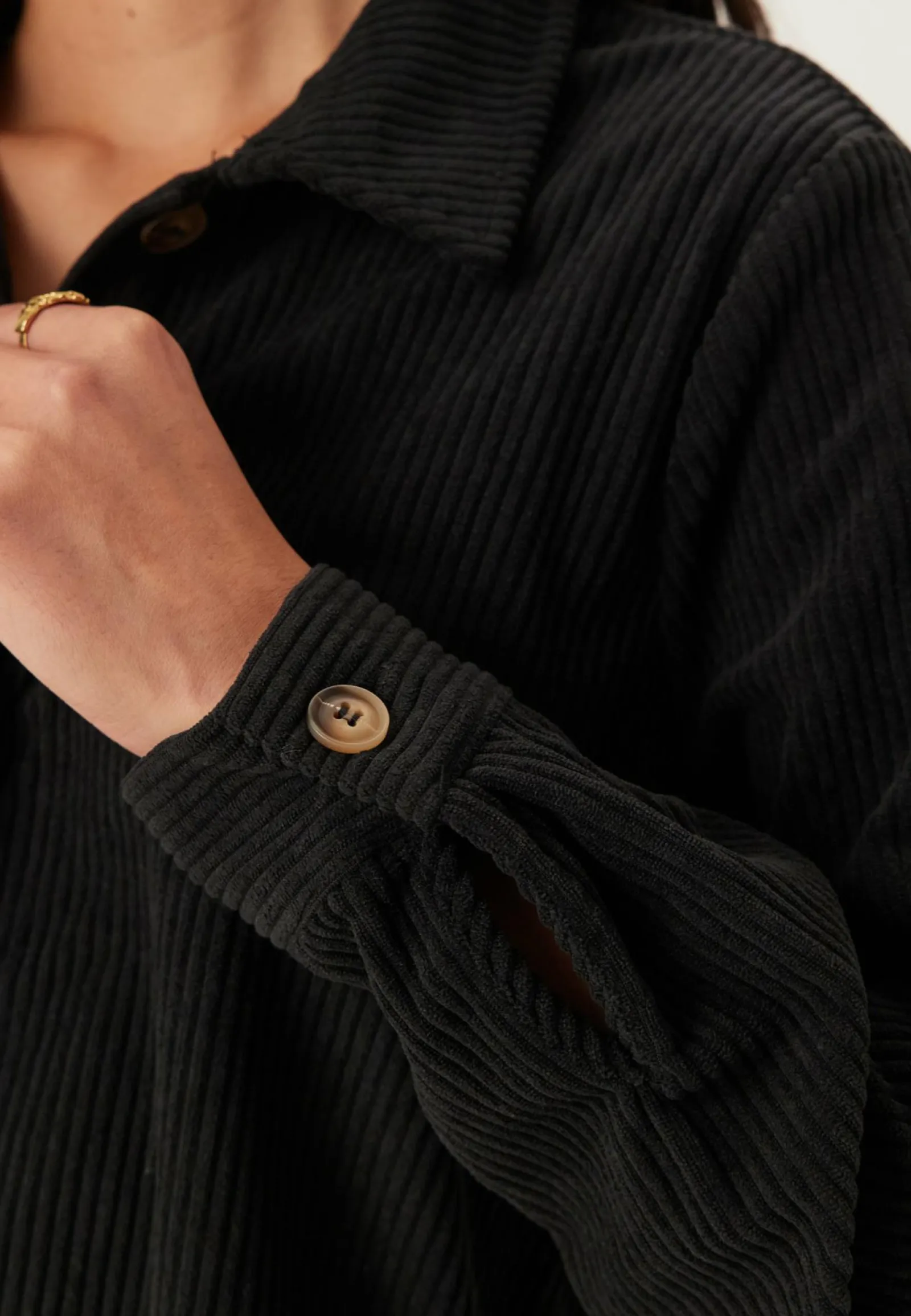 – Nappikiinnitys edessä ja hihansuissa